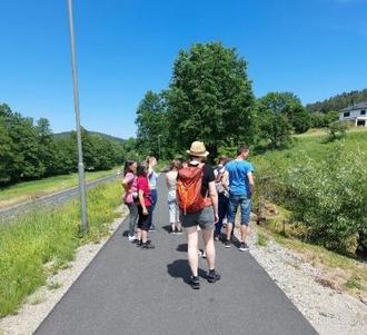 Geführt von Wanderfreund Roland Müller ging’s am Startpunkt ehem. Bahnhof Rupboden los in Richtung Eckarts. Entlang des Spurensucherpfads „Strecke 46“ führte der Weg durch den Wald zur Eckartser Siedlung. Dort konnte am Spielplatz eine kurze Verschnaufpause eingelegt werden.