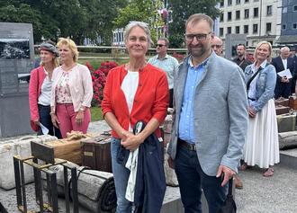Eva Reichert-Nelkenstock und 2. Bürgermeister Volker Roth am DenkOrt in Würzburg.