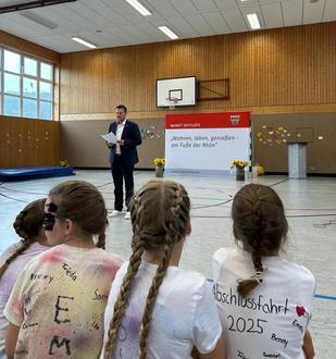 In einem bunten, stimmungsvollen Rahmen wurden die Schülerinnen und Schüler der vierten Klasse mit herzlichen Worten, kleinen Aufführungen und viel Applaus verabschiedet. Für sie beginnt nun ein neuer Lebensabschnitt an weiterführenden Schulen – ein spannender Weg mit neuen Lehrerinnen und Lehrern, neuen Fächern und vielen neuen Möglichkeiten. Bürgermeister Matthias Hauke wünschte den Kindern viel Mut, Freude am Lernen und das Vertrauen in die eigenen Stärken: