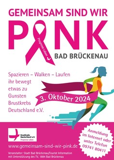 Veranstalter des PINK-Laufs ist die Stadt Bad Brückenau mit tatkräftiger Unterstützung des TV 1884 Bad Brückenau e.V. und vieler weiterer Partner und Förderer. Die Anmeldung erfolgt unter www.gemeinsam-sind-wir-pink.de. oder per Telefon unter 09741 80411.