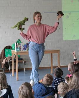 Nach einer Schulstunde baute die Autorin geschickt eine Bewegungspause ein. Wie Tiere durften die Kinder laufen, sich biegen, hüpfen und mit den Armen schlagen.