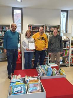 Edgar Kübert, Angelika Gehrsitz und das ganze Büchereiteam bedanken sich ganz herzlich bei Harald Gangl und Benjamin Karl von der Firma Planistar, die die großzügige Spende überreichten.