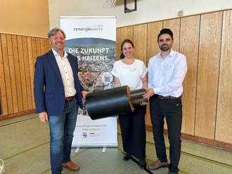 Wie das Nahwärmenetz für Zellingen aussehen kann, stellten die Renergiewerke Zellingen auf der Infoveranstaltung vor. Von links: Stefan Wohlfart (Erster Bürgermeister Zellingen), Johanna Weidlich (Projektleiterin Renergiewerke Zellingen) und Oguzhan Sari (Kundenberater Renergiewerke Zellingen)