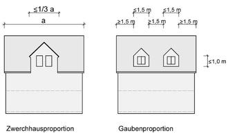 Dachaufbauten sind entweder als Zwerchhäuser oder als Einzelgauben zulässig, Einzelgauben jedoch nur in Form von Schleppgauben, Flachdachgauben oder Satteldachgauben.