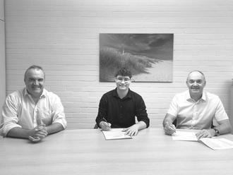 Im Beisein vom stellvertretenden Gemeinschaftsvorsitzenden Karl Gerhard und dem Geschäftsstellen- und Ausbildungsleiter Wolfgang Pfister wurde das Prüfungszeugnis der Bayerischen Verwaltungsschule ausgehändigt und der Arbeitsvertrag unterzeichnet.