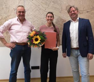 Annalena Kuhn hat Prüfung zur Verwaltungsfachangestellten bestanden und Arbeitsvertrag unterzeichnet
