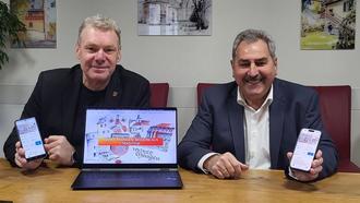 1. Bürgermeister Lorenz Strifsky und 2. Bürgermeister Wolfgang Heß (von rechts) freuen sich, dass die Informationen von www.markt-thuengen.de nun auch über eine App für Smartphones abgerufen werden können. – Foto: Jaqueline Heß