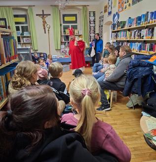 Auch dieses Jahr hat der Nikolaus unsere Bücherei in Retzbach besucht. Zahlreiche Kinder und Eltern warteten auf seine Ankunft. Als er dann die Bücherei betrat wurde er mit großen Augen, Ehrfurcht und Vorfreude begrüßt.