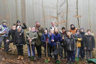 Bei ihrem Waldtag griffen die Fünftklässlerinnen und Fünftklässler der Zellinger Mittelschule am Donnerstag zum Hohlspaten und pflanzten rund 100 Weißtannen.