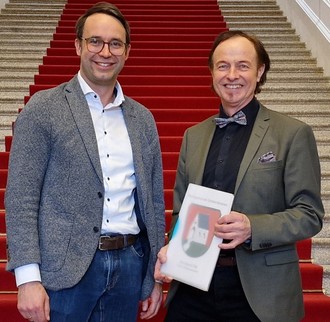 MdL Max Deisenhofer und Bürgermeister Bernhard Uhl beim Treffen im Bayerischen Landtag