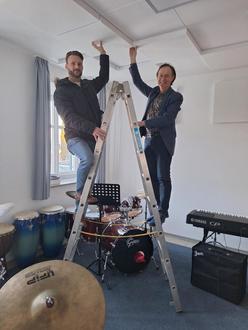 Angeregt wurde die Verbesserungsmaßnahme von der Musikschulleiterin Franziska Lichtenstern, da der provisorische „Schallschutz durch Wandteppiche“ sehr in die Jahre gekommen war.