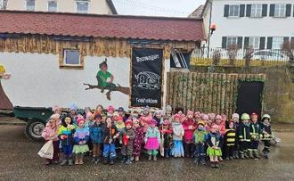 Am Ende unseres Krachumzuges wurden wir vom Faschingswagen des Bauwagen Freihalden empfangen. Mit großer Begeisterung haben die Kinder sich den tollen Faschingswagen angeschaut und darauf getanzt. Vielen Dank für den Besuch bei uns!