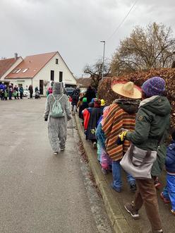 Doch damit war es nicht getan. Am Freitag fand dann der traditionelle Krachmacherumzug statt. Gerüstet mit allem, was Krach macht, ging es durch Zusmarshausen. Über die Raiffeisenbank zum Seniorenheim und weiter ins Rathaus. Die Kinder freuten sich sehr, ihre Faschingslieder vortragen zu dürfen und bekamen auch die ein oder andere Kamelle.