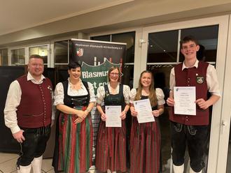 Auch in diesem Jahr wurden wieder Musikerinnen und Musiker geehrt. Die Ehrungen überreichte die stellvertretende Bezirksvorsitzende Jasmin Berchthold vom Allgäu-Schwäbischen Musikbund. Für 10 Jahre aktives Musizieren wurde Nils Thielemann geehrt. Carolin Scherer erhielt eine Ehrung für 15 Jahre und Monika Wiedemann wurde für 40 Jahre aktives Musizieren geehrt.