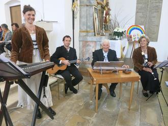 Drei verschiedene Mariendarstellungen betrachteten die Frauen des Katholischen Frauenbunds Zusmarshausen bei ihrer Maiandacht in der Pfarrkirche: die Schmerzensmutter unter dem Kreuz, die Lourdes-Madonna, vertraut aus der Grotte, und Maria vom Sieg, die Himmelskönigin mit Zepter und Krone am Maialtar. „Maria zeigt uns den Weg zum Glauben. Ihr Beispiel hilft uns, das Schwere im Leben zu tragen.“ so die Botschaft der Texte und Gebete. Musikalisch begleitete die Stubenmusik der Familie Reiter (Bild) aus Zusmarshausens Ortsteil Gabelbachergreut mit feinen Klängen die besinnliche Stunde. An der Orgel führte Frauenbundmitglied Luise Katzenschwanz den Gesang der beliebten Marienlieder an.