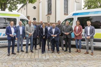 Die Projektbeteiligten freuen sich auf den Start des AktiVVo am 01.06.2023. Im Bild von links nach rechts: Bgm. Bernhard Uhl (Markt Zusmarshausen), Bgm. Florian Mair (Altenmünster), Bgm Anton Gleich (Bonstetten); Bgm Thomas Hafner (Horgau), Landrat Martin Sailer (Landkreis Augsburg), Dr. Linda Kisabaka (AVV-Geschäftsführerin), Bgm. Heinrich Jäckle (Heretsried), Bgm. Sebastian Bernhard (Adelsried), Bgm Karl-Heinz Mengele (Emersacker), Bgm. Stefan Scheider (Welden), Simone Hummel (Entwicklungsforum Holzwinkel und Altenmünster e.V., Felix Adam (Geschäftsführer DB Regio Bus Bayern)