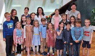 Nataliya Frenzel (hinten Mitte) mit ihrer Klavierklasse nach dem erfolgreichen Konzert