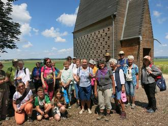 Die Riedlandschaft zwischen Zusamtal und Donau war das Ziel einer gut zwölf Kilometer langen Rundwanderung mit den „Freunden des Zusamtals“. Gestartet wurde bei sommerlichen Temperaturen in Pfaffenhofen, dem Zusamort mit dem weithin sichtbaren Kirchturm. Luise Rieß (1.Reihe links kniend) führte die Wandergrupe ortskundig über die Lindenallee auf dem Millenniumsweg hinaus in die Riedlandschaft und nach Oberthürheim, wo an der bekannten modernen Wegekapelle, eine der sieben von Holz Denzel jüngst gestifteten „Landmarken“, Rast und Picknick angesagt waren (Bild). Über den Skulpturenweg mit den Kunstwerken zeitgenössischer Bildhauer, die Russenbrücke und das Mahnkreuz, das an den Erhalt der schützenwerten Riedlandschaft erinnert, ging es zurück nach Pfaffenhofen. Dort stellte Fritz Hillenbrand die Geschichte der Pfarrkirche bei einem Besuch des barocken Gotteshauses vor, ehe es zur willkommenen Einkehr in den Biergarten unter den Kastanien beim „Lagoi“ ging.