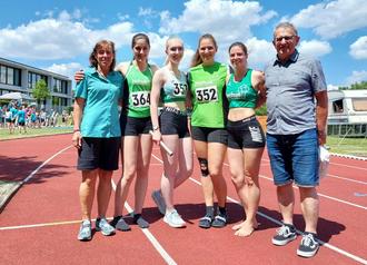 Die 4x100 Meter-Staffel der Damen (hier mit ihrem Trainer-Duo Silvia Maisch und Hans Mayer) konnte sich für die Bayerischen Meisterschaften qualifizieren.