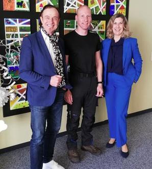 Von links: Bernhard Uhl (Schulverbandsvorsitzender), Hausmeister Markus Wiedemann und Rektorin Daniela Wörle