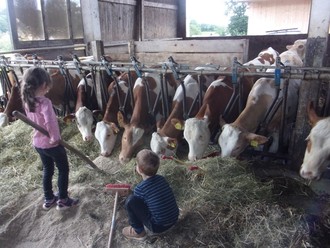 Da die Kinder auch mit eigenen Augen sehen sollen, wo die Lebensmittel herkommen, machten wir am 14. Juni einen Familienausflug zum Hollandhof nach Horgau. Die Erlebnisbäuerin Ramona Geiger führte die Familien über den Hof und erklärte einiges über Viehhaltung, Vermarktung der Milch, Kälberaufzucht und vieles mehr. Die Kinder waren natürlich vor allem von den vielen Tieren begeistert, die sie auch füttern durften: Schweine, Ziegen, Hühner, Kühe und ein paar Katzen.