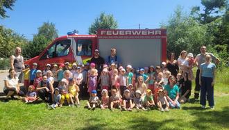 Die Feuerwehrmänner Christian, Boris, Matthias und Bernd haben tolle Stationen aufgebaut. In kleinen Gruppen durften wir mit dem Feuerwehrauto fahren, mit dem Schlauch „Feuer“ löschen und wir haben alles über die Kleidung eines Feuerwehrlers erfahren.