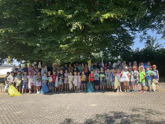 Die Kinder der Klasse 1a, 1b und 1c der Grundschule Zusmarshausen nach ihrer Müllsammelaktion