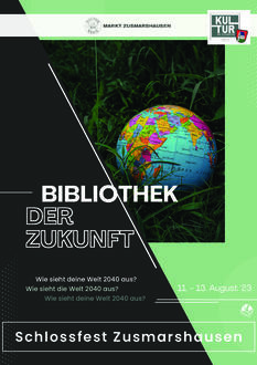 BIBLIOTHEK DER ZUKUNFT Wie sieht deine Welt 2040 aus? 11. - 13. August '23 Wie sieht die Welt 2040 aus? Wie sieht deine Welt 2040 aus? Schlossfest Zusmarshausen