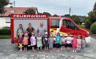 Wir hatten einen großartigen Feuerwehrtag bei uns im Kindergarten. An verschiedenen Stationen durften wir „Feuer“ löschen, eine Runde mit dem Feuerwehrauto drehen und die Einsatzkleidung kennen lernen. Das Highlight war die Wasserparty, als wir uns mit dem Schlauch nass spitzen durften. Zum Mittagessen gab es leckere Bratwurstsemmel, die uns von zwei Mamas gerillt wurden. Das war lecker!
