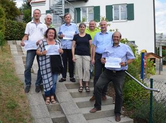 Personen von rechts: Klaus Heinrich (Vorstand der Freiwilligen Feuerwehr Streitheim, Stefan Vogg, Simone Siegel, Ulrich Sippl (alle BI Streitheim), Gerhard Nentwich (Vorstand des Soldaten- und Kameradschaftsverein Streitheim), Engelbert Kohler (BI Streitheim) Alfred Scheurer (Vorstand des Schützenvereins Waldheil Streitheim) und Petra Krautwald (Kindergarten Wichtelburg Streitheim)