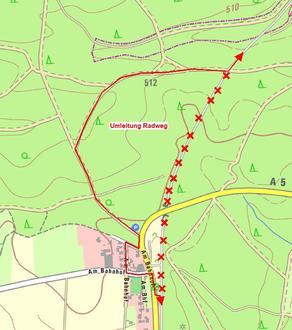 Für die vorbereitenden und abschließenden Arbeiten (u. a. Herstellung Mikropfähle) wird der Weldenbahnradweg seit Montag, 22. Juli bis voraussichtlich Samstag, 30. November 2024 umgeleitet. Die Umleitungsstrecke führt größtenteils über Waldwege, welche für die Umleitung ertüchtigt werden und nicht asphaltiert sind.