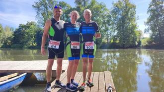 Das Zusser Triathlonteam beim Oettinger Volkstriathlon, von links Michael Steinbacher, Claudia Mende, Karl Sendlinger