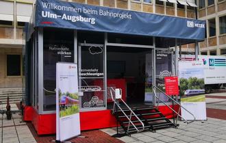 Ein Großprojekt wie der Bahnausbau zwischen Ulm und Augsburg ist ein Jahrhundertvorhaben. Eines, das den Alltag der Menschen beeinflusst. Entsprechend haben viele auch Fragen: „Gibt es Schallschutz an der Strecke?“, „Hält der ICE dann auch in Zusmarshausen?“ oder „Auf welcher Höhe wird der Bahnhof entstehen?“. Ingenieurinnen und Ingenieure aus dem Planungsteam der DB besuchen deshalb die Gemeinden entlang der Vorzugsvariante und bieten an, Fragen zu beantworten. Die Gespräche finden dabei in einem mobilen Infozentrum statt, das sich bereits in der Vergangenheit bewährt hat. In diesem Infomobil befinden sich Bildschirme, an denen die Fachleute anhand der interaktiven Karte der Verlauf erklären können. Am 18. September 2024 hält das Infomobil dabei vor dem Rathaus in Zusmarshausen. Wann genau das DB-Team hier sein wird, steht ab September auf der Homepage des Bahnprojekts ulm-augsburg.de.