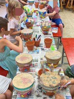 Am Freitag 09.08.2024 fand das Ferienprogramm "Trommeln aus Blumentöpfen basteln" statt. In zwei Schichten aufgeteilt bastelten wir von 10 bis 15 Uhr mit den Kindern die Trommeln. Nachdem alle Schichten des Backpapiers aufgetragen waren, wurden die Trommeln noch fleißig mit Stickern, Glitzersteinen, Federn, Kordeln und Stiften verziert. Anschließend durften die Kinder noch unsere bereitgestellten Instrumente ausprobieren. Der Tag hat sehr viel Spaß gemacht und am Ende konnten alle mir ihrer selbst gebastelten Trommel nach Hause gehen. Insgesamt ein sehr gelungener Tag, fanden die Verantwortlichen der Marktkapelle Zusmarshausen, die Veranstalter dieses Ferienprogrammpunktes war.