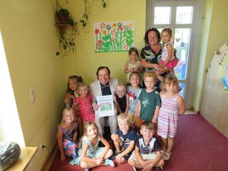Erster Bürgermeister Bernhard Uhl bedankte sich bei den Kindern und brachte, bei seinem Besuch ein paar leckere Süßigkeiten mit.