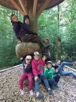 Dass sich die Kinder im Wald auskennen und viele Waldtiere bereits kennen, zeigte sich beim Spiel „Fledermaus und Falter“, bei dem die Orientierung durch Ultraschall ausprobiert wurde.