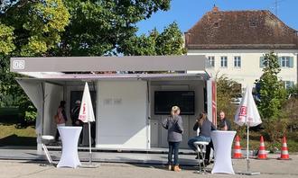Das Info-Mobil beim Rathaus Zusmarshausen vor dem Ansturm der zahlreichen Interessierten