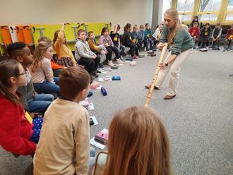In der ersten KlingSing-Stunde im neuen Jahr erwartete die zweiten Klassen der Grundschule Zusmarshausen ein ganz besonderes musikalisches Erlebnis. Schon viele Wochen vorher haben sie sich darauf vorbereitet: erforscht, welchen langen Weg ein Stück Holz nehmen muss, dass es vom Baum zu einer spielbaren Blockflöte wird und welche Holzarten dafür passend sind; gelernt, wo genau der namensgebende Block in die Flöte eingebaut ist und Lieder dazu gesungen.