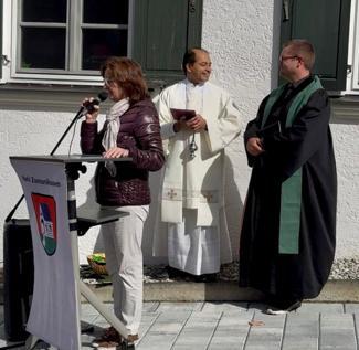Zum Abschluss des offiziellen Festakts spendeten Pfarrer Chalil und Religionspädagoge Felix Henkelmann dem Anbau, den Außenanalgen und der Einrichtung den kirchlichen Segen in einer ökumenischen Segensfeierlichkeit.