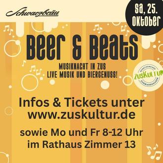 Nach dem überwältigenden Erfolg im letzten Jahr geht „Schwarzbräu Beer & Beats – powered by ZusKultur“ am 25. Oktober 2025 in die zweite Runde – und das mit noch mehr Power: 11 Locations, 11 Bands, 1 Ticket, 1 Nacht voller Musik, Stimmung und bester Unterhaltung mitten in Zusmarshausen!