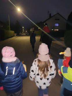 Natürlich gab es auch einen Laternenumzug, den die Kinder mit ihren Eltern und ihren selbstgebastelten Laternen begleitet haben. Angeführt wurde unser Laternenumzug von unserer Martinsreiterin auf ihrem Pferd. Vielen Dank an unseren Elternbeirat für die fleißige Unterstützung.