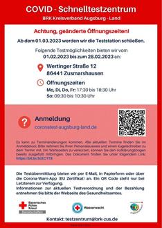 Die Teststation Zusmarshausen des Bayerischen Roten Kreuzes schließt am 28.02.2023 die Teststation.