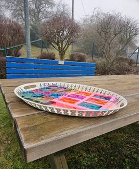 Das Tablet mit den Förmchen stellten wir auf einen Tisch in unserem Garten.