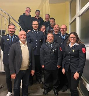 Die neue Vorstandschaft: 1. Vorstand-Christoph Gollmann, 2. Vorstand-Andre Lüdemann, 1.Kommandantin-Andrea Fischer, 2. Kommandant-Martin Streit, Kassierer-Martin Knöpfle, Schriftführer-Christian Hartmann, Beisitzer-Karin Lüdemann, Norbert Fritz, Johann Heichele, Thomas Sohnle, Anton Streit mit 2. Bgm. Walter Aumann