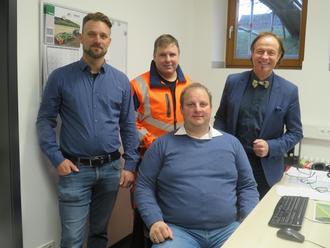 von links: Marktbaumeister Peter Finkenzeller, Markus Belak und Bürgermeister Bernhard Uhl / sitzend: Tobias Riedel