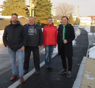 Von links: Marktbaumeister Peter Finkenzeller, Michael Bayr von Firma Bayr Röfingen, Anliegerin Sabrina Streit und Bürgermeister Bernhard Uhl