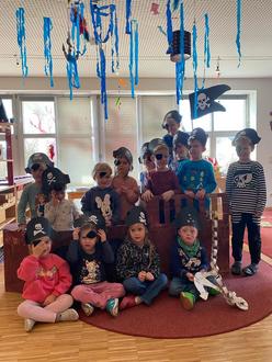 Sogar unser Bürgermeister war bei seinem alljährlichen Faschingsbesuch in unserem Kindergarten passend als Pirat verkleidet.
