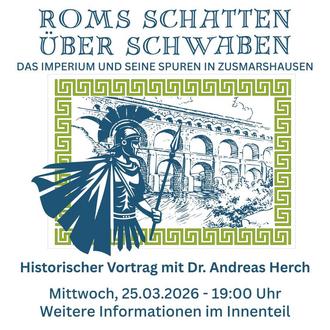 Ein besonderer Fokus liegt auf den regionalen Spuren der Römer: Auch in Zusmarshausen finden sich Hinweise auf römische Präsenz, Handel und Infrastruktur. Der Vortrag verbindet damit große Weltgeschichte mit lokalen Entdeckungen - spannend, fundiert und anschaulich.