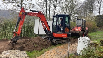 „Es soll morgen regnen!“ Diese Aussage schreckte die Mitglieder des Fördervereins Höhenschwimmbad Gößweinstein nicht davon ab, den Arbeitseinsatz am 28. und 29. April 2023 stattfinden zu lassen – ganz im Gegenteil! Denn eine Aufgabe bestand darin, einen Teil der oberen Liegewiese, der nur noch ein brauner Flickenteppich war, zu erneuern. Dafür kam zunächst der Minibagger zum Einsatz, anschließend wurde eine Schicht frischer Humus und darauf Rollrasen verlegt. Der Regen ersparte das Schleppen einiger Gießkannen, so dass das saftige Grün bis zum Saisonstart robust und widerstandsfähig ist.