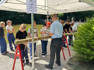 Die Jugendlichen mussten dabei verschiedene feuerwehrtechnische Aufgaben bewältigen – darunter das Anfertigen von Knoten und Stichen, das korrekte Absetzen eines Notrufs sowie den sicheren Umgang mit Ausrüstungsgegenständen. Alle Teilnehmerinnen und Teilnehmer meisterten die gestellten Anforderungen mit großem Engagement und hoher Motivation.